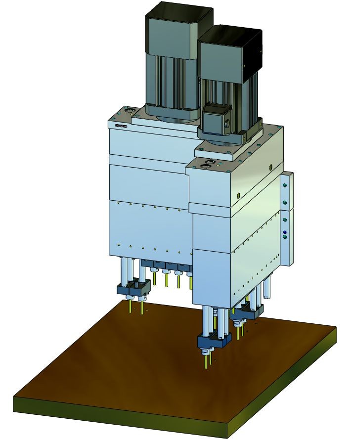 立式鉆孔主軸可與鉆孔距離≥16mm的臥式鉆孔主軸和立式鉆孔齒輪組合。單獨的鉆孔主軸可自由選擇,長度為 50 毫米,可根據要求提供更長行程的單元。實際鉆孔進給必須由客戶的機器進給執行。這些裝置由皮帶驅動,最高速度為 8,600 rpm。所有鉆孔主軸都具有相同的旋轉方向。