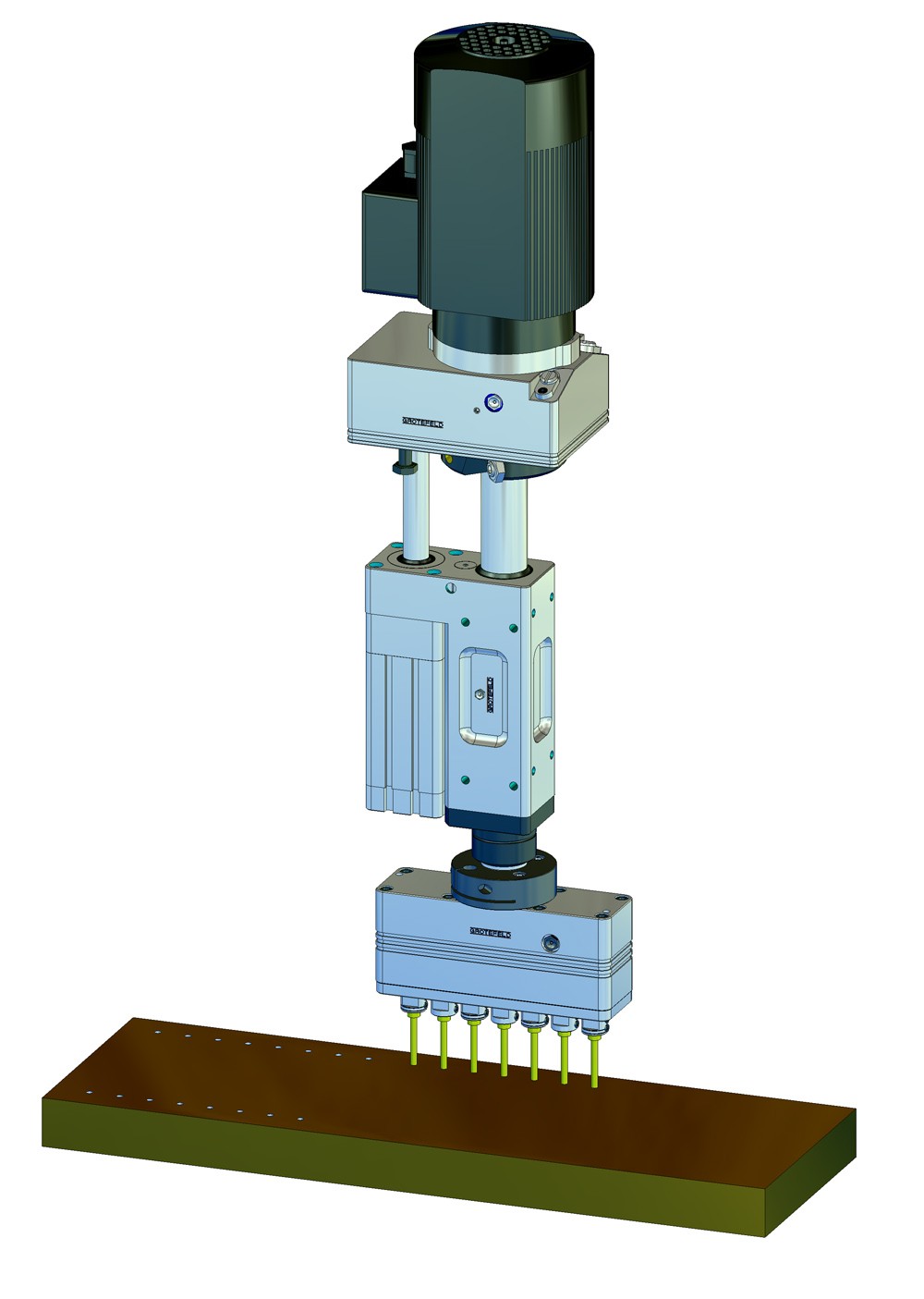 單元的行程為 80mm(Z 軸),可使用止動螺釘減少行程。