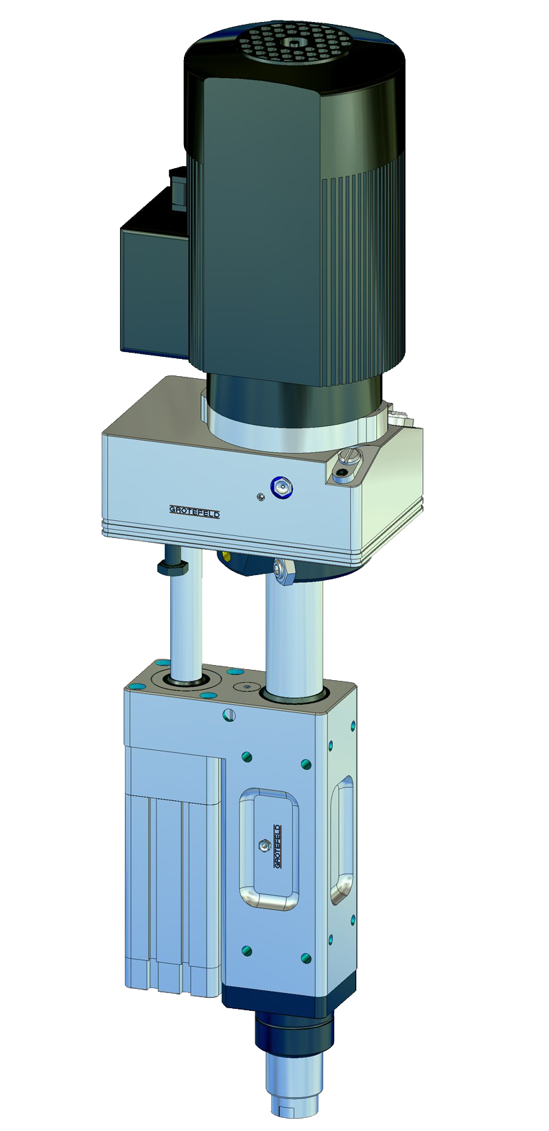 DVM050 系列的 GROTEFELD 旋轉裝置可將帶有夾緊環的 GROTEFELD 裝置旋轉最多 90°(C 軸)。旋轉運動以氣動方式進行;角度可以通過末端擋塊進行調整。