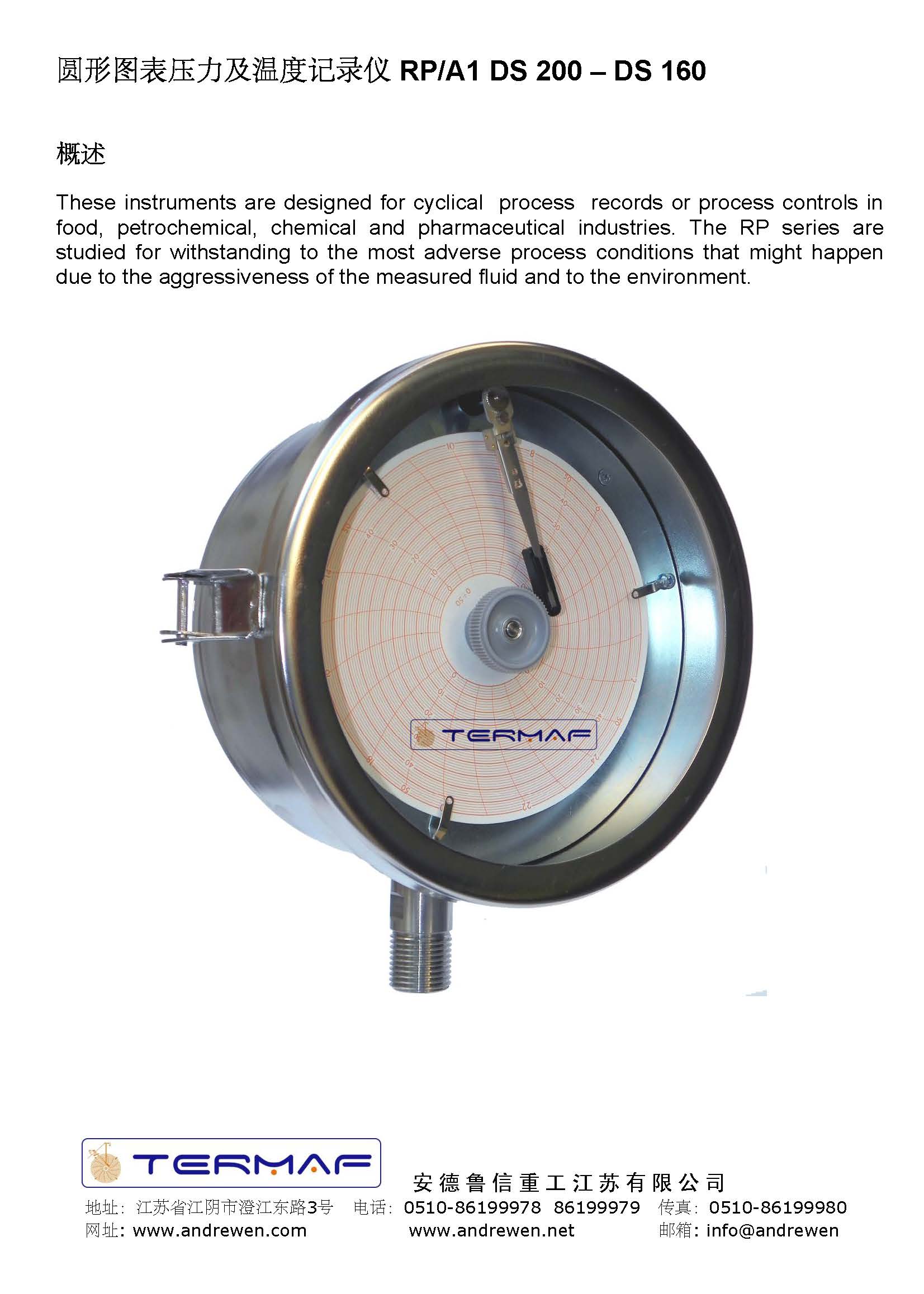 圓形圖表壓力及溫度記錄儀 RP/A1 DS 200 – DS 160-意大利TERMAF