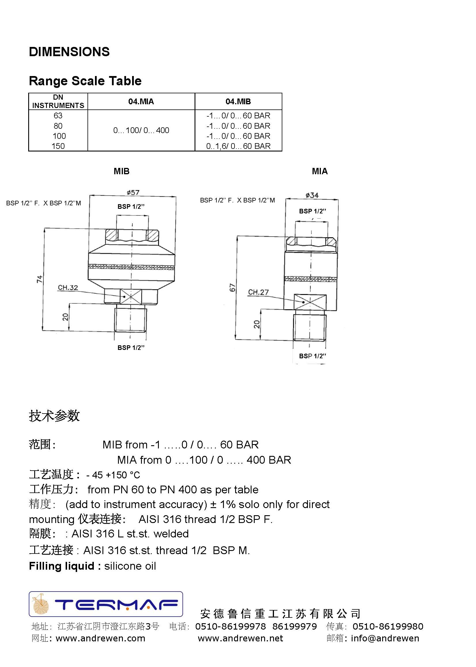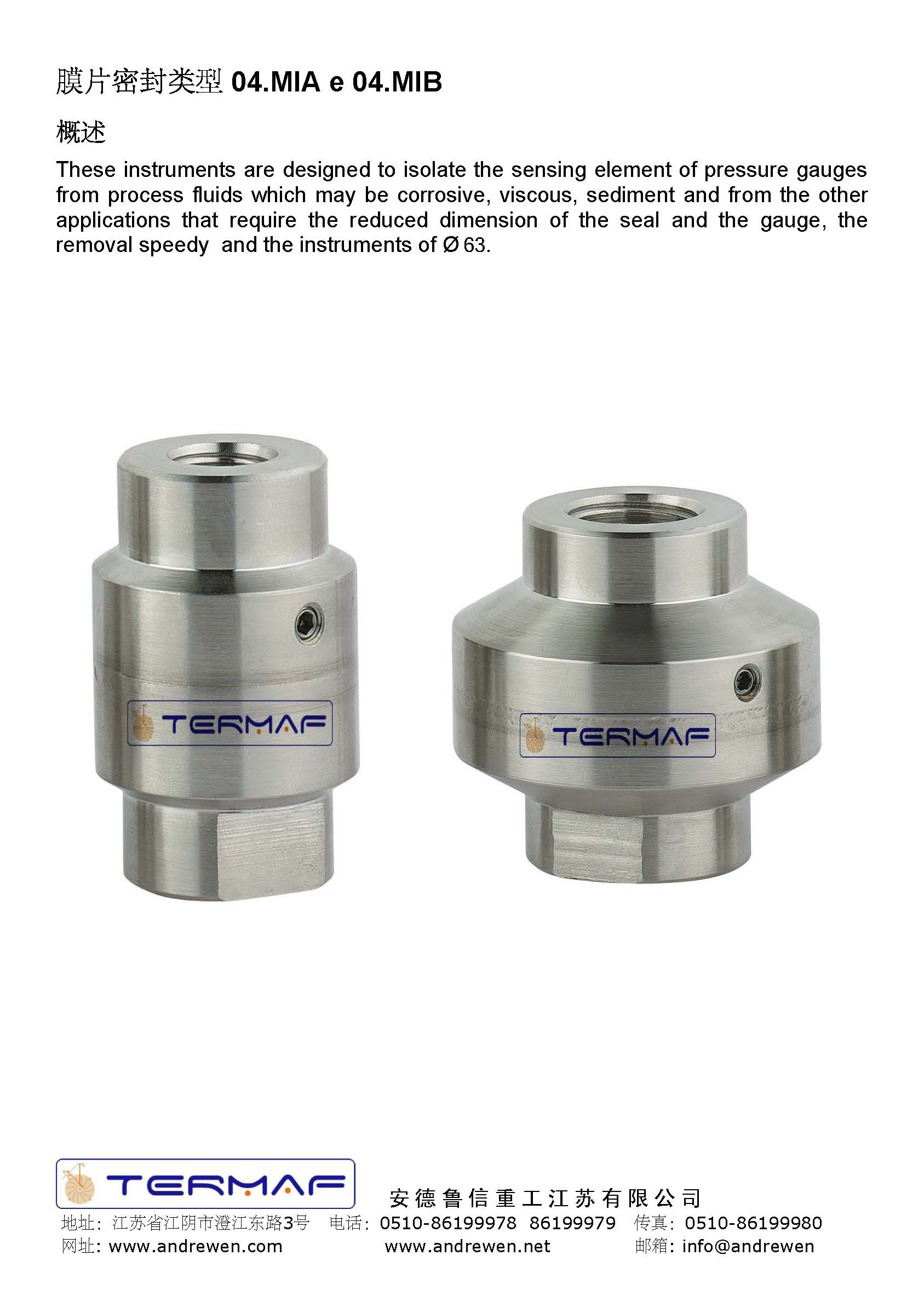 膜片密封類型 04.MIA e 04.MIB-意大利TERMAF